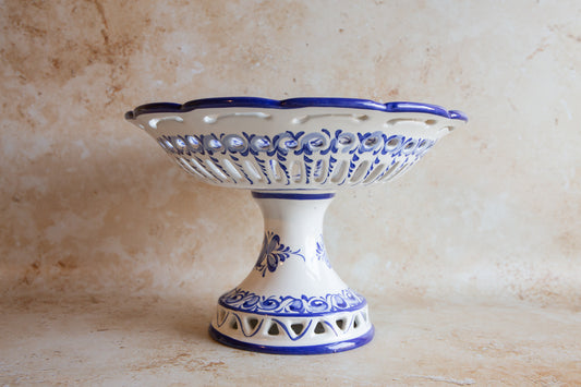 Vintage Portuguese Blue and White Reticulated Large Fruit Bowl