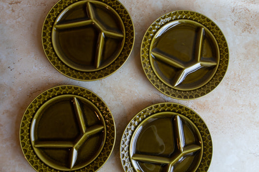 Set of 4 Vintage Sarreguemines Green Fondue Plates