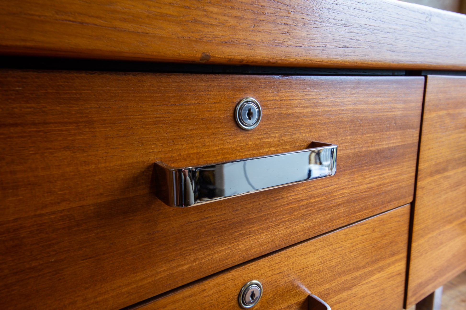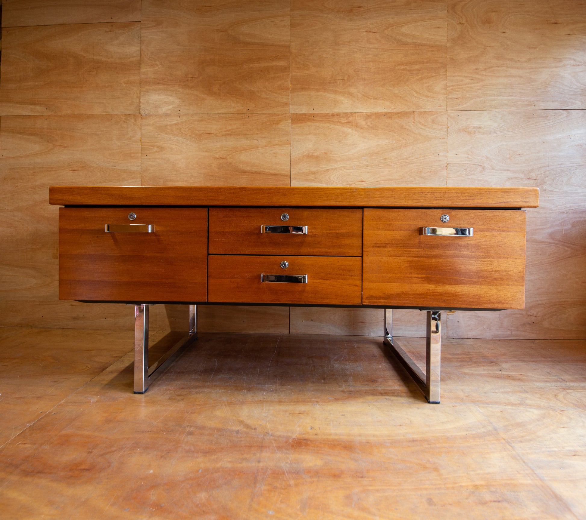 Condition Report: Item is generally in great condition. There are some minor marks, scratched and dents to the wood and sides. The Chrome has minor scratches and marks (Please see images). Scratches to the side of the black everflex material (see images). If you would like further images or information please contact me and I will do my best to help. Please note the keys for the drawers are missing.