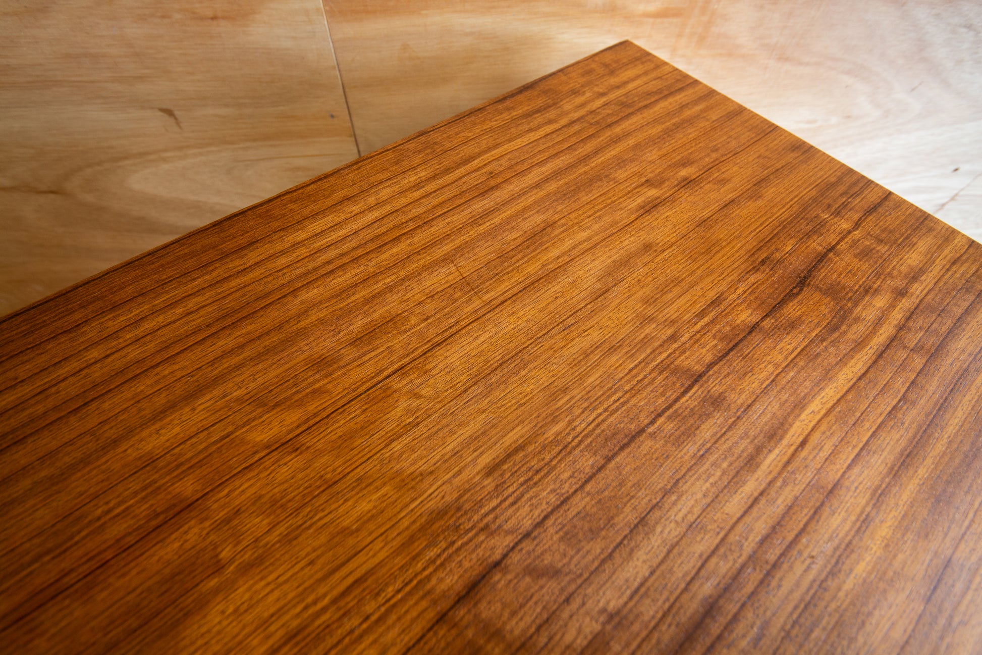 The gold embossed stamp was used by Gomme on the first range of from 1952 and continued into the sixties. It was a 'brand' in the true sense of the word. G-Plan was branded furniture and every piece was marked with this stamp. The text says 'E Gomme, High Wycombe'. EG in the centre, stands for E Gomme. 'G-Plan' is in capital letters under the stamp.