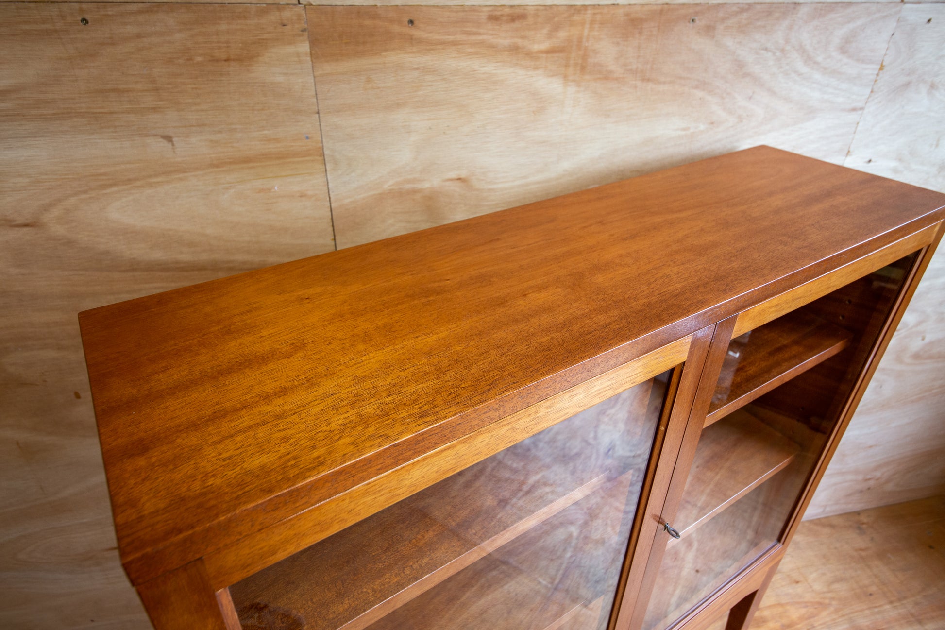 Condition Report: In general this piece is in great condition, with some minor scratches, marks and dents. The glass has no chips or cracks, some minor scratches. The shelves are slightly bowed due to use.